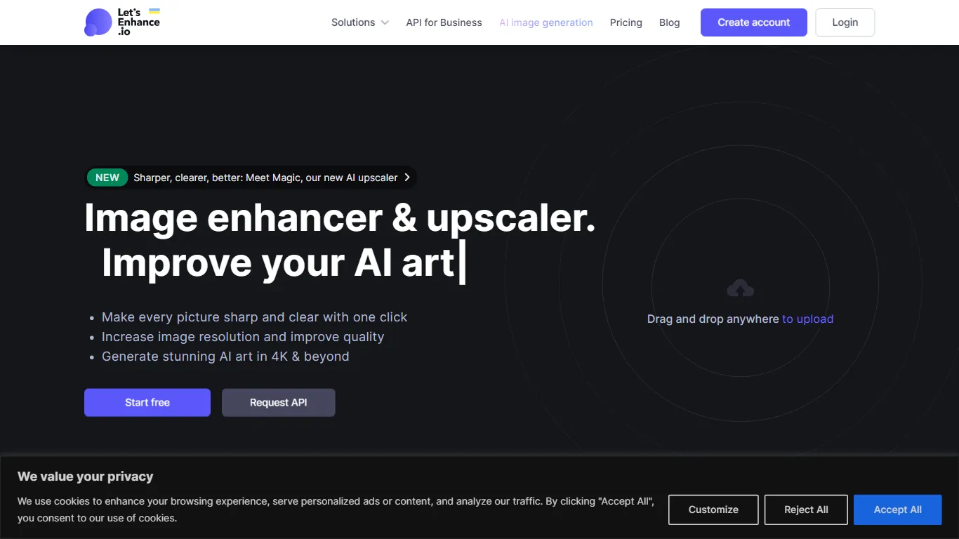 Lets Enhance é uma ferramenta alimentada por IA para aprimorar, aprimorar e gerar imagens de alta qualidade. A ferramenta foi projetada não apenas para aumentar a resolução da imagem, mas também para melhorar sua qualidade geral, corrigindo problemas comuns como desfoque e pixelização. Ele é capaz de transformar imagens de baixa qualidade em fotos nítidas e claras destinadas ao uso digital, impressão e web. Além de melhorar a qualidade da imagem das fotos existentes, possui um recurso para gerar imagens de autoria de IA. Isto o torna útil para uma variedade de profissionais, incluindo criativos e empresas que desejam aprimorar imagens para seus serviços ou produtos. Os usuários podem converter palavras em imagens de alta resolução e redimensioná-las ou aumentá-las sem perder qualidade, mesmo para resoluções HD, 4K e muito mais. A ferramenta também oferece soluções para aprimorar a qualidade de impressão com resolução, cor e clareza superiores nas impressões. Existe um recurso projetado para lidar com conteúdo gerado pelo usuário, melhorando a resolução de imagens não tiradas profissionalmente e tornando-as materiais prontos para impressão. As empresas podem usá-lo para otimizar imagens de sites para melhor desempenho e experiência do usuário. Oferecendo recursos adicionais que economizam tempo, como edição em lote, permite aos usuários processar várias imagens ao mesmo tempo.