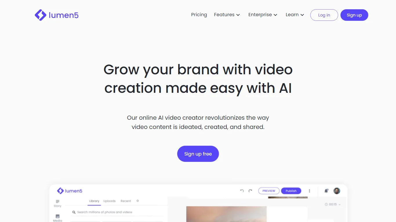 O Lumen5 é uma plataforma de criação de vídeos impulsionada pela Inteligência Artificial que permite a criação de conteúdo de vídeo envolvente de maneira simples e rápida. Ele se assemelha a uma apresentação do PowerPoint em termos de sua interface intuitiva de arrastar e soltar, mas oferece recursos mais avançados.