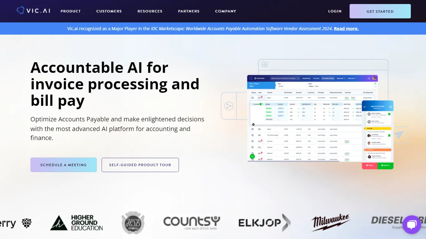 O Vic.ai simplifica as operações contábeis e de contas a pagar utilizando a inteligência artificial para lidar com tarefas como processamento autônomo de faturas, fluxos de aprovação, correspondência de PO e pagamentos. Isso leva a um aumento da eficiência e produtividade.